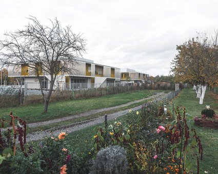 Ganz am nordöstlichen Rand des Stadtgebiets von Wiesbaden, angrenzend an ein Wohngebiet aus den 1970er-Jahren, befindet sich der Neubau der Albert Schweitzer Schule in Mainz-Kostheim. Mit ihm wandert die Förderschule mit Ganztagesangebot aus einer zentralen Lage an Bahngleisen und Bundesstraße in eine deutlich ruhigere Gegend, die unmittelbar ans Grüne grenzt.