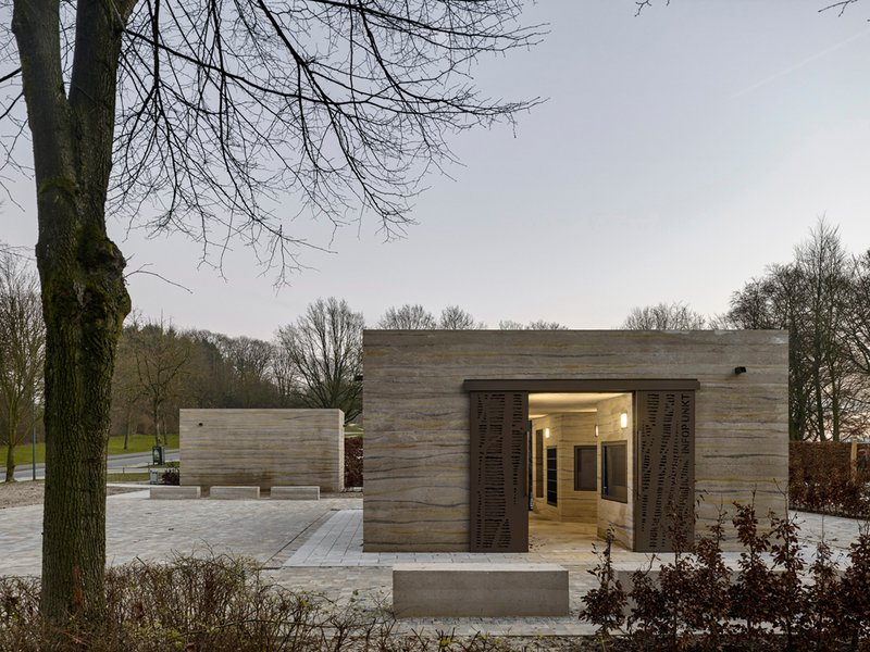 Außerdem setzte die Entscheidung für Stampfbeton eine hohe Experimentierfreudigkeit und ein großes Engagement voraus, weil nicht Standard verarbeitet, sondern Kreativität und handwerkliches Können abverlangt wurden. Mit eigens entwickelten Rezepturen stellte man zunächst viele Muster her, um den gewünschten Farbton, die Dichte und Verarbeitbarkeit zu erzielen. Durch Zugabe geeigneter Gesteinskörnungen näherte man sich schließlich dem Farbton der Muschelkalksteine der Sparrenburg an.