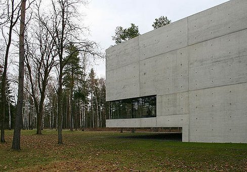 Das Dokumentationszentrum ist inzwischen fertig, Ende Oktober 2007 wurde es eröffnet. Ein 200 Meter langes, monolithisches Sichtbetongebäude, das sich mit seiner nur 18 Meter breiten Schmalseite bis an den Parkplatz heran schiebt. Auf der anderen Seite endet es kurz hinter der ehemaligen Lagergrenze. Um den Boden dort nicht zu berühren, kragt der Riegel die letzten Meter aus. Vom Parkplatz kommend, öffnet sich das Gebäude dem Besucher lediglich mit einem Rücksprung im Erdgeschoss. Dieser stellt sich beim Näherkommen als das Ende eines Weges heraus, der den Besucher entlang der Längsfassade führt. Auf der rechten Seite bieten großformatige, rahmenlose Fensterflächen den Einblick ins Foyer. Die Türen sind als massive, bündig in der Wand liegende Elemente und in ihrer reduzierten, geschosshohen Form kaum als solche zu erkennen. Vielleicht gewollt, denn hier befindet sich nicht der Zugang zum Museum, sondern der Ausgang. Um zum offiziellen Eingang zu gelangen, folgt der Besucher weiter dem äußeren Weg. Dieser löst ihn Schritt für Schritt, langsam aus seiner Umgebung und seinem Alltag heraus, erst kaum merklich, durch die schwebende, auskragende Fassade, dann zunehmend stärker durch eine ebenfalls gebäudehohe Wand auf der zuvor freien Seite, anschließend wird der Weg auch von oben begrenzt. In einer Art Tunnel führt er durch das Gebäude in einen japanisch anmutenden Innenhof. Hier verspringt der Weg und führt auf der gegenüber liegenden Seite des Gebäudes erneut schnurgerade und zwischen dem Gebäude und einer Mauer gefangen, auf das Gelände des ehemaligen Lagers hinaus.