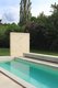 Das teils ein-, teils zweigeschossige Einfamilienhaus basiert auf einem L-förmigen Grundriss mit einem Einschnitt an der äußeren Gebäudeecke im Norden. Hier befindet sich der Eingang, davor liegt ein kleiner Patio. Rechter Hand geht es in den kleineren, eingeschossigen Gebäudeflügel, der den Gästetrakt und daran anschließend eine Garage beherbergt. Links vom Eingang erstrecken sich Richtung Südosten der zweigeschossige Gebäudeflügel mit den Wohn- und Schlafräumen der Familie. Im offen gestalteten Erdgeschoss gehen Küche, Wohn- und Essbereich fließend ineinander über; außen grenzt eine überdachte Terrasse an. Eine einläufige Treppe führt ins Obergeschoss mit drei Schlaf- und zwei Badezimmern. Intern sind diese Räume über eine Galerie, extern über eine zweiseitig umlaufende Loggia miteinander verbunden. Das Dach von Gästetrakt und Garage dient gleichzeitig als Terrasse. Abstell- und Technikräume sind im wesentlich kleineren Untergeschoss untergebracht.