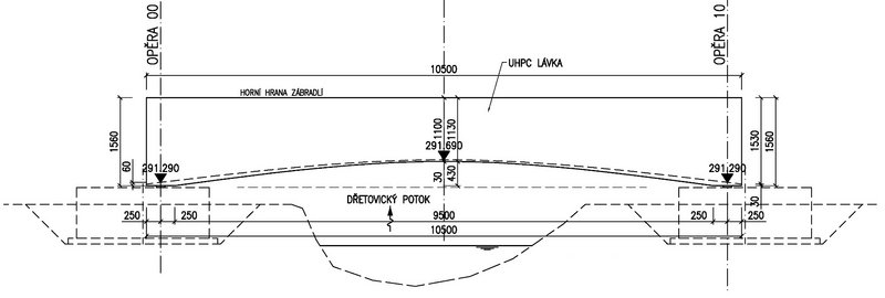 Für das Bauwerk wurden circa 1,4 m³ Beton benötigt, das Gewicht beträgt in etwa 3,5 Tonnen. Die Oberflächen wurden abgesäuert und einige Details händisch geschliffen. Eine Besonderheit der Brücke ist, dass die präzise angeordneten Ankerlöcher offen belassen wurden. Dadurch wird die geringe Stärke des Bauteils zusätzlich betont. Nebenbei geben sie einen Hinweis auf das verwendete Material - Beton würde einem beim Anblick der filigranen Konstruktion ansonsten nicht unbedingt zuerst in den Sinn kommen. -chi