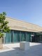 Glatter Sichtbeton hingegen findet sich im Vorhof im Bereich der Begrenzungsmauer und des Trinkbrunnens; im Foyer beziehungsweise im Saal zeigt sich das Material an Dachträgern und Stützen. -chi