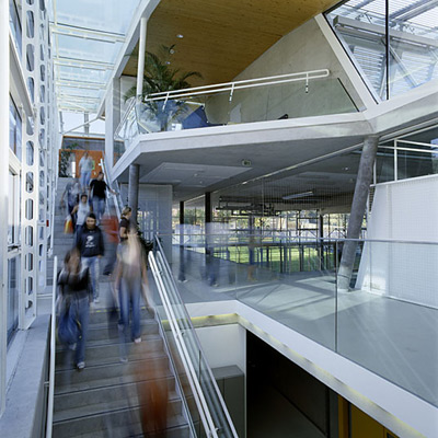 Mit der Schule haben die Architekten einen Ort geschaffen, der den Kindern, die im Alltag häufig Einschränkungen ihrer Bewegungsfreiheit erfahren, viel Freiraum bietet. Sie erreichen dies durch die Anordnung der Räume, durch die Lichtführung und durch Sichtbeziehungen und vielfältige Durchblicke nach außen.