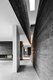 Das Erdgeschoss wartet mit einer fließenden Abfolge großzügig dimensionierter Wohnräume auf. Im Obergeschoss befinden sich drei Schlafräume mit eigenen Bädern sowie das Hauptschlafzimmer mit Bad, Ankleide und Aufenthaltsbereich im schräg stehenden Volumen. Das Untergeschoss beherbergt neben der Garage und weiteren Nebenräumen die Gästezimmer und Technikräume. Verbunden sind alle Bereiche über eine einläufige Treppe und einen Aufzug. Der anthrazitfarbene Beton findet sich auch im Inneren, wo er mit überwiegend glattweißen Oberflächen kontrastiert. Die rauen, dunklen Flächen inszenieren die Räume und prägen mit ihrer lebendigen Textur die Atmosphäre.