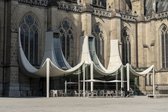 Für den Zugang, mit dem sich der historische Kirchenbau auf seiner östlichen Seite zur Stadt hin als Schnittstelle zwischen sakralem Raum und urbanem Leben neu öffnet, so Peter Haimerl, „verfolgten wir damals zwei Grundideen. Zum einen planten wir eine zeltartige Struktur von außen vor die Kirche zu bauen. Zum anderen sollte diese der Umkehrung der Spitzgewölbe in den Seitenschiffen des historischen Doms entsprechen.“ Für diese Idee, so berichtet der Architekt, ließ er sich auch vom dem katalanischen Architekten Antoni Gaudi inspirieren. Gaudi, bekannt für seine Kirche „Sagrada Familia“ in Barcelona, versuchte ebenfalls, Jochgewölbe durch Hängekonstruktionen zu simulieren. „Was übrigens nicht funktioniert. Auch das habe ich hier lernen müssen,“ ergänzt Haimerl.